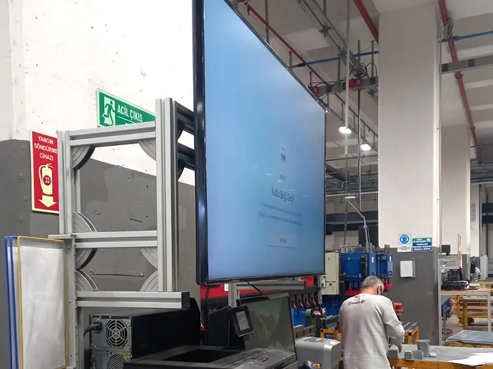 - Fabrikalarda ve Üretim Tesislerinde: Ekranlar, üretim hatlarını izlemek ve operatörlere bilgi sağlamak amacıyla kullanılır. Yüksek çözünürlükleri, makinelerin performansını kolayca izlemeyi sağlar.